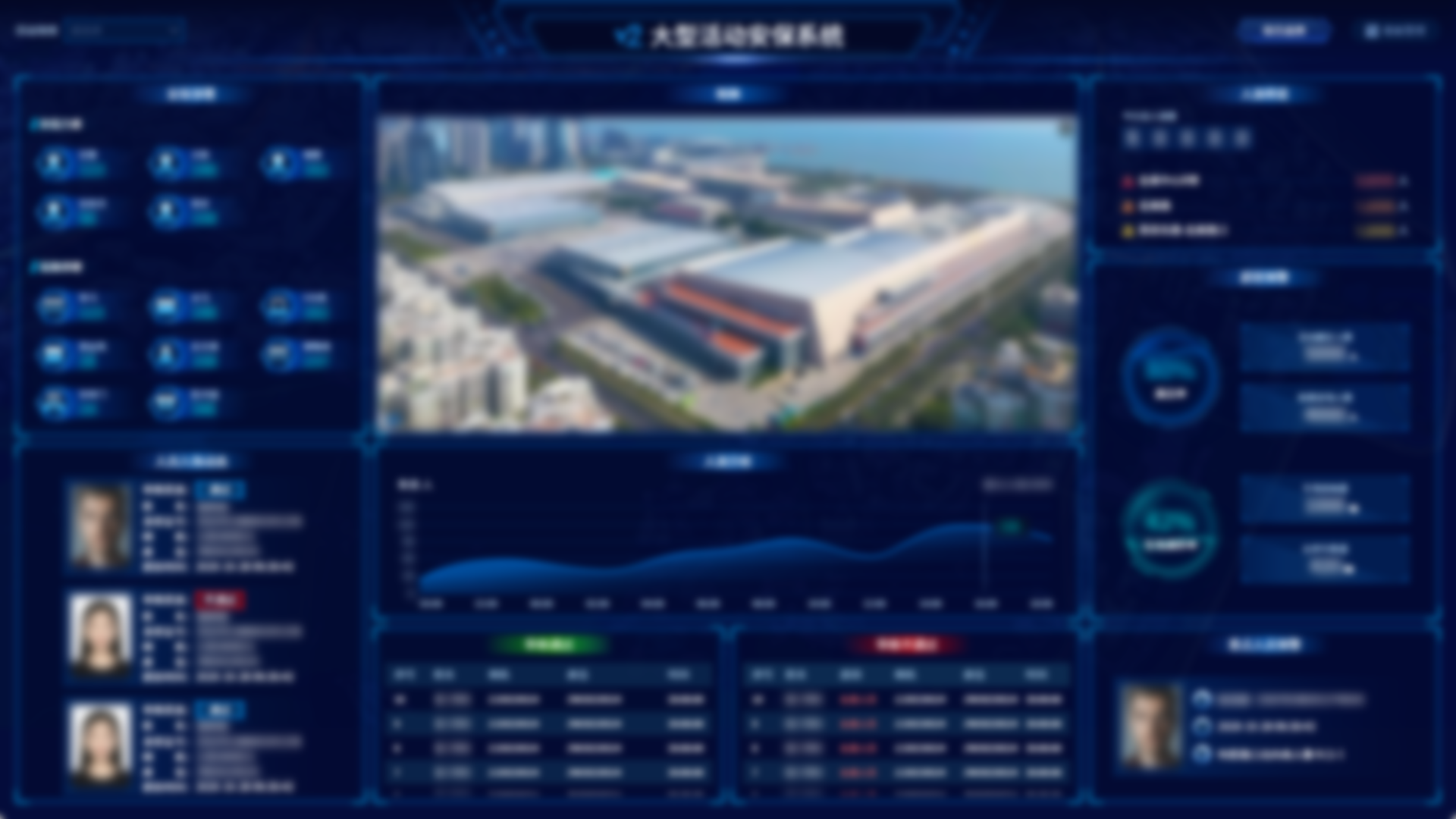 汇聚票、证、音视频等安保要素,实现安保活动流程化管理,包括申报审批、方案制定、人员背审、活动归档等。通过可视化呈现活动现场人员、警力、警情、交通、设备等态势,多维度、全方位进行管理和分析,实现活动现场的快速感知、精准识别、触圈预警、实时响应、联动指挥。